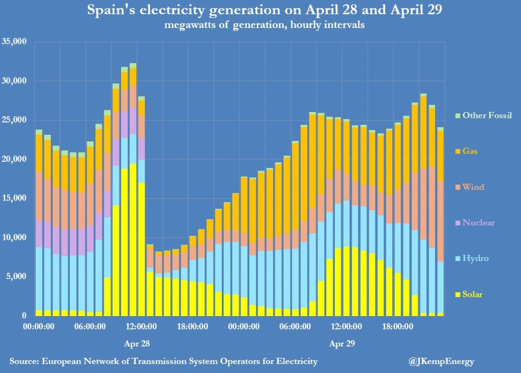 « Quand j’avais appris par les infos le déclenchement de ce black-out en Espagne et au Portugal, explique-t-il, j’avais immédiatement fait une capture d’écran des relevés de production électrique avant et au moment de la panne. On voyait bien que cela coïncidait avec une forte augmentation de production d’origine solaire. »