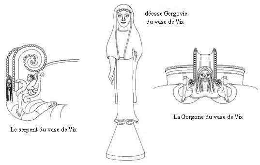 Le dragon/serpent (le mal) et la Salamandre (le bien) sont nés des volcans Tous deux se sont incarnés dans le plateau. Et suivant le choix qu’elle fait, Gergovie a deux visages : celui de la Gorgone ou celui de la déesse.Le témoignage de Platon : Poséidon s’étant uni à Clito, la rendit cinq fois enceinte, chaque fois de deux enfants mâles. Il donna à Atlas, le premier-né, le territoire de sa mère (Gergovie/Le Crest et la plaine de la Limagne) et à son jumeau nommé Gadire la contrée qui prit le nom de Gadirique (la région de Cadix en Espagne)... Tous ces fils de Poséidon et leurs enfants demeurèrent dans ce pays pendant plusieurs générations et régnèrent sur beaucoup d’autres îles (la Grande Bretagne etc...) situées dans la mer (l’Océan Atlantique) ; et même, comme je l’ai dit auparavant, ils étendirent leur empire en deçà du détroit jusqu’à l’Égypte et la Tyrrhénie (Critias)... Nos livres nous apprennent quelle puissante armée, Athènes a arrêtée dans sa marche insolente, lorsqu’elle envahissait à la fois l’Europe et l’Asie entière en s’élançant du milieu de la mer Atlantique... En outre, en deçà du détroit, ils (les rois de l’Atlantide) dominaient sur la Libye jusqu’à l’Égypte, et sur l’Europe jusqu’à la Tyrrhénie. Un jour, cette île, réunissant toutes ses forces, entreprit d’asservir votre pays, le nôtre, et toutes les contrées situées en deçà du détroit (Timée).